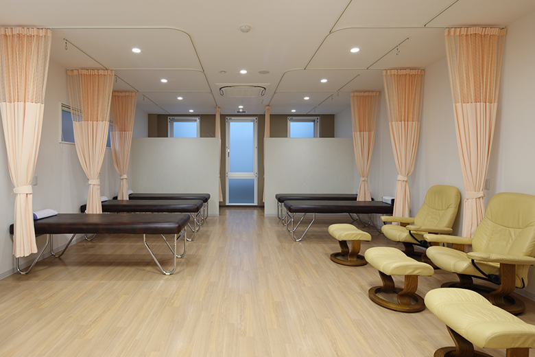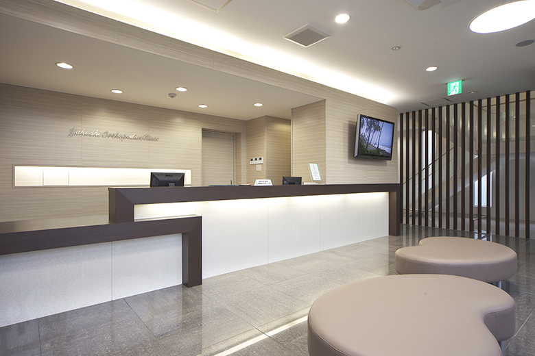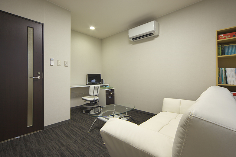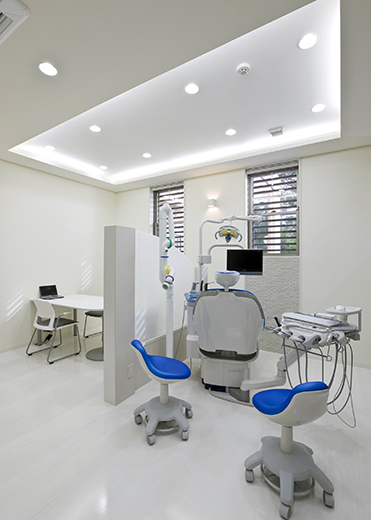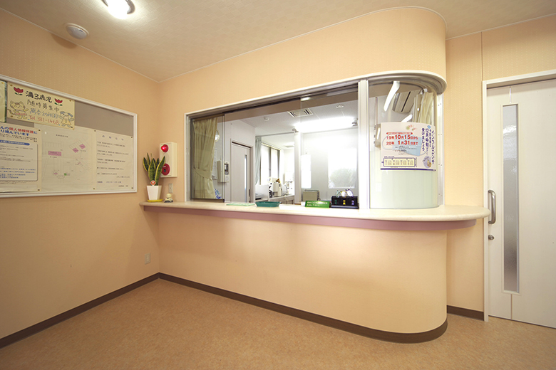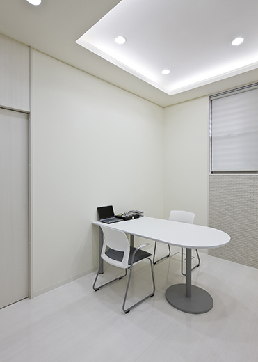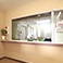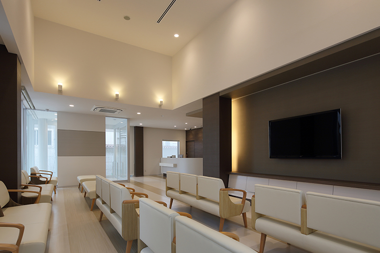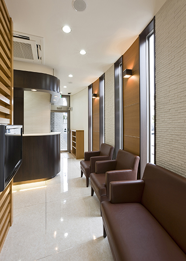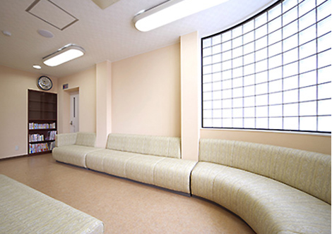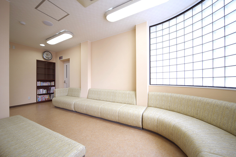 広い待合室には大きなガラスブロック窓より柔らかな光とプライバシーの確保が得られます。